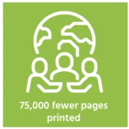 Our responsibility to society means a responsibility to the planet. We’ve cut down on travel and we’ve printed 75,000 fewer pages.