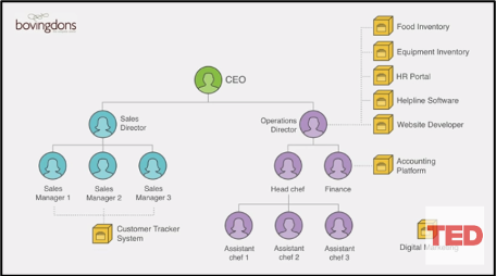 List the employees in their teams as for any normal org-chart and then add to the chart all the technologies that your firm uses.